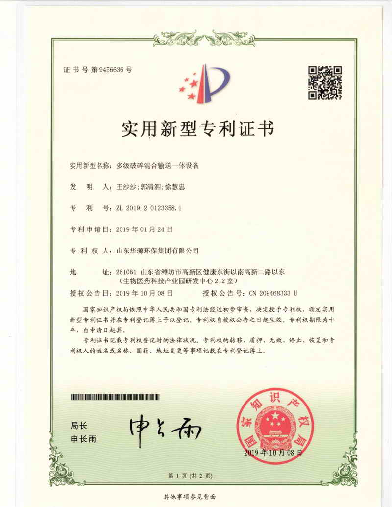 專利證書一種廢鋁灰生產速凝劑用鋁灰磨粉裝置